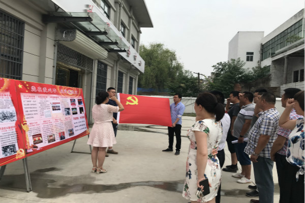 7月4日下午,镇机关支部全体党员在政务服务大厅外参观了建党97周年的党史图片展,在参观前由组织委员何淑贤带领宣誓,重温入党誓词。